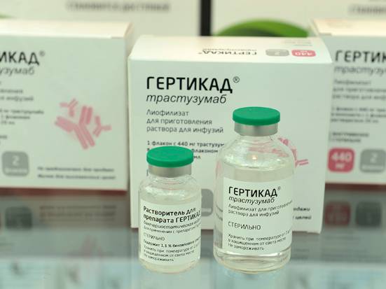 В 2015 году в России были проведены клинические исследования нового биологического препарата. “Гертикад” — биоаналог “Трастузумаба”, используемого в лечении новообразований в молочной железе и желудке. Изготовлен на основе гуманизированного моноклонального антитела, благодаря чему, разрушает только раковые клетки. На данный момент он является одним из самых эффективных препаратов в ликвидации опухолей молочной железы и желудка.