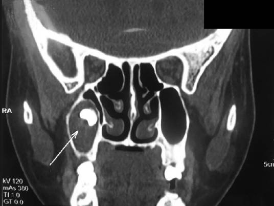 Характеризуется как осложнение после закупорки в гайморовой пазухе.